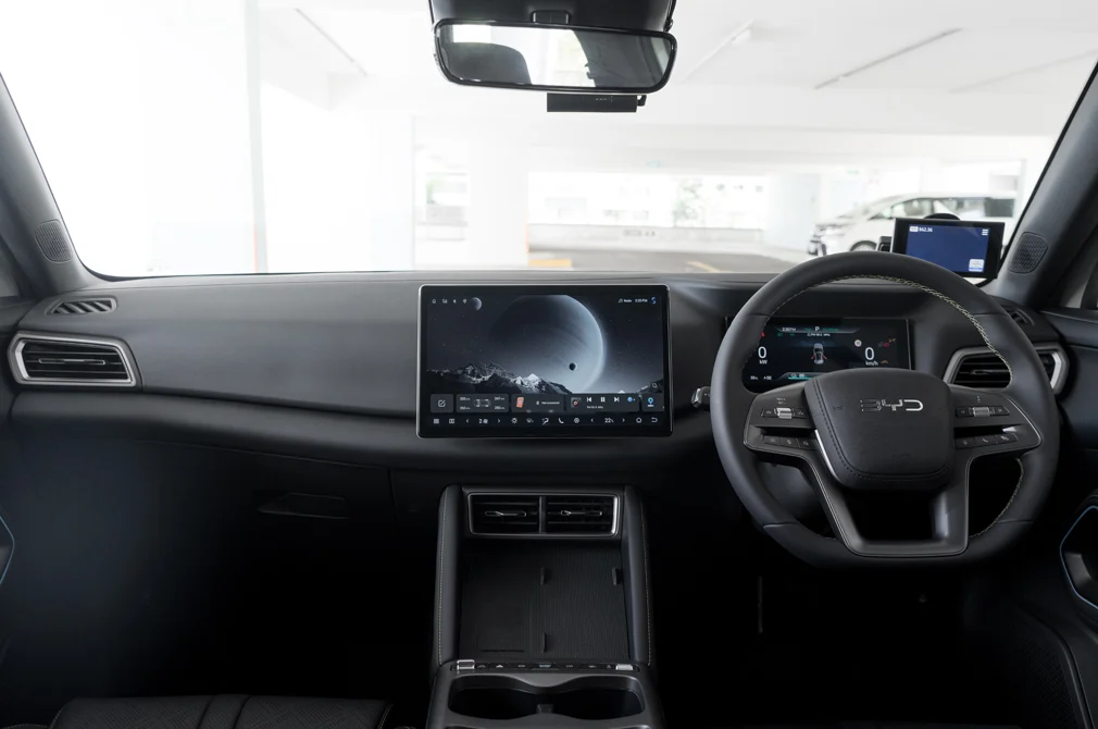 Controls for the audio, adaptive cruise control and telephony are found on the steering wheel. And unlike the buttons on the Atto 3, these feel more solid and thus have more satisfying tactility to them. It would’ve been nice if the climate controls were also physical, but at least they are permanently docked at the bottom of the 12.8-inch touchscreen.